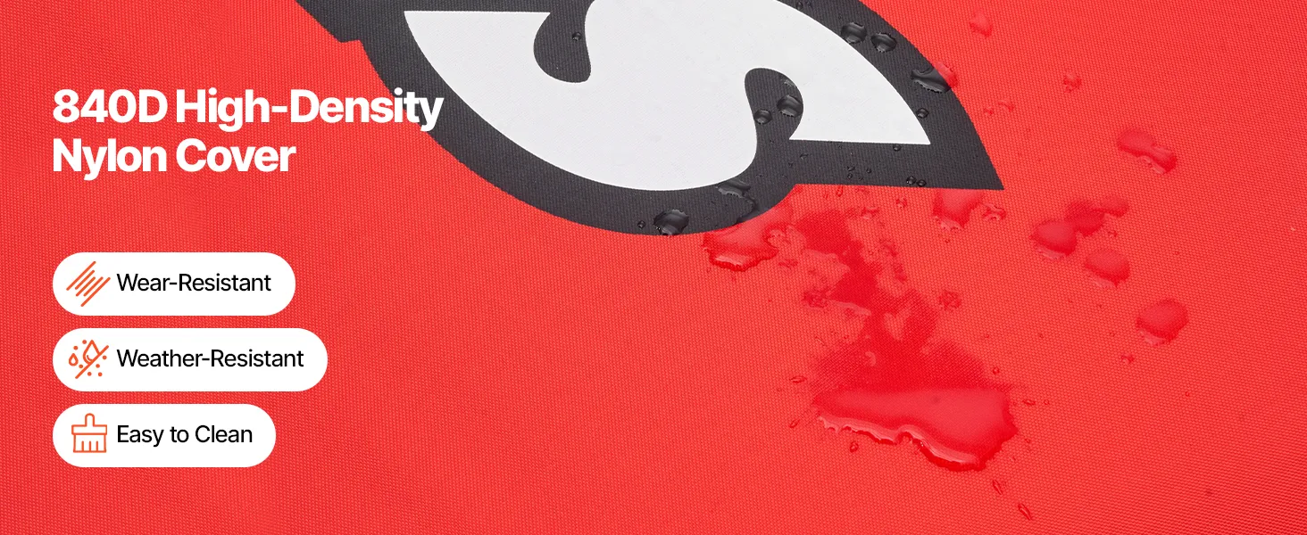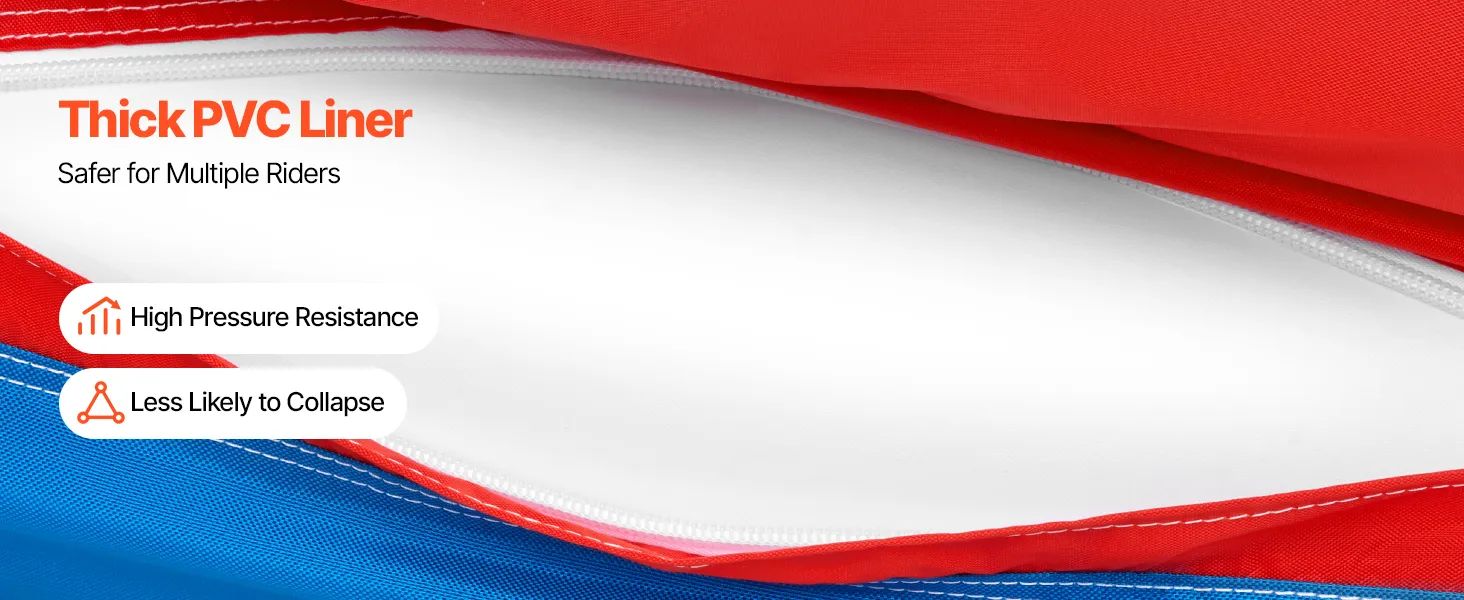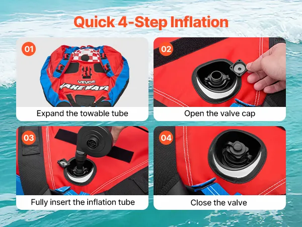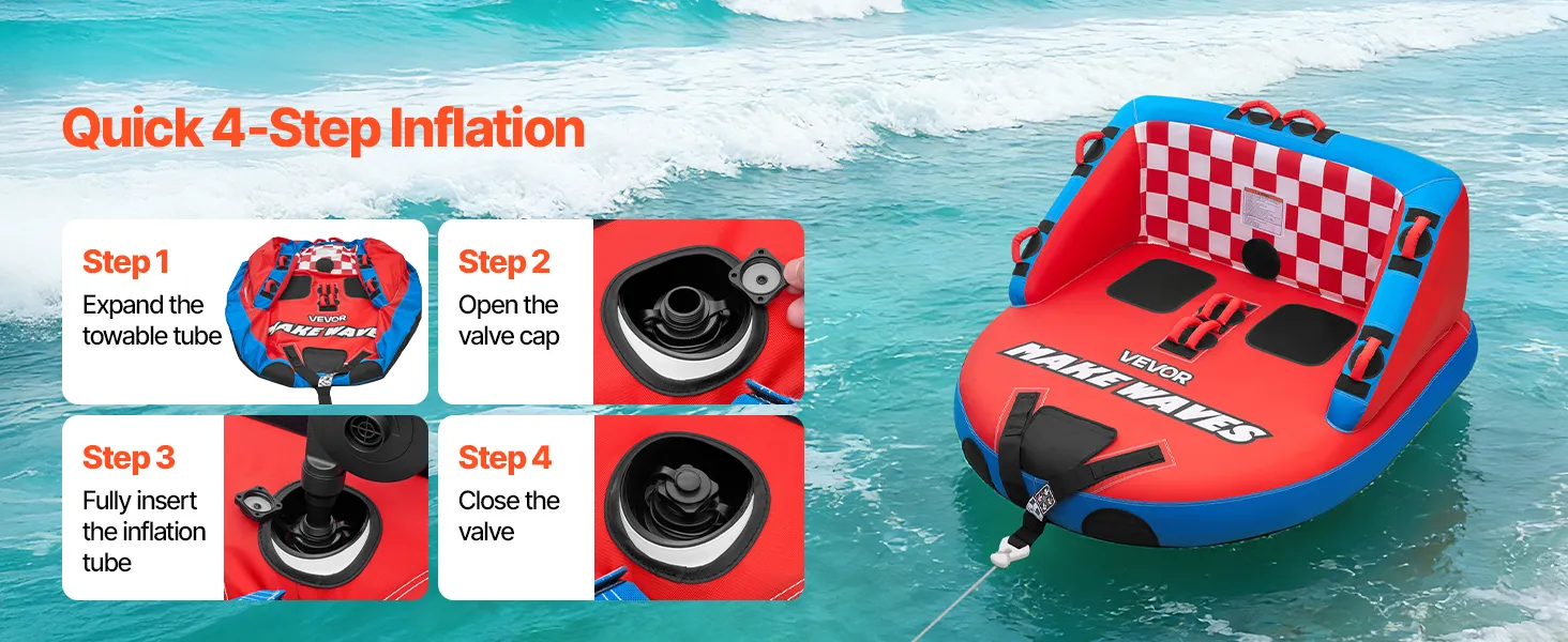 Snel opblazen en leeglaten: Een veilig ventiel met een luchtdichte afsluiting zorgt voor eenvoudig opblazen en leeglaten. Eenmaal leeggelopen, kan de sleepband compact worden opgeborgen en gemakkelijk worden vervoerd. (Luchtpomp niet inbegrepen)