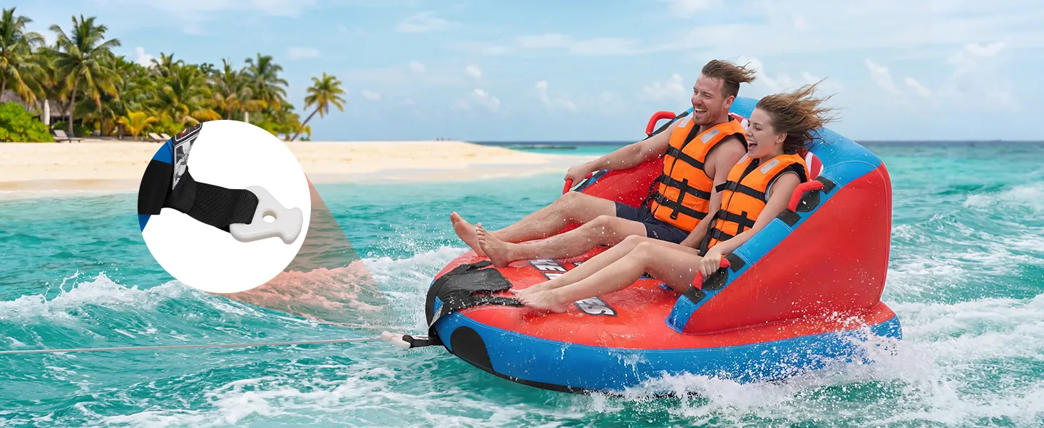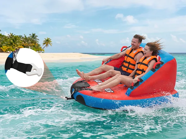 Langdurig waterplezier: De sleepband is voorzien van een dikke PVC-binnenvoering en een robuuste nylon buitenkant met dubbelgestikte naden, waardoor hij ontworpen is voor intensief gebruik. De materialen zijn UV- en verouderingsbestendig, waardoor hij ideaal is voor wateravonturen op zee, meren en rivieren.