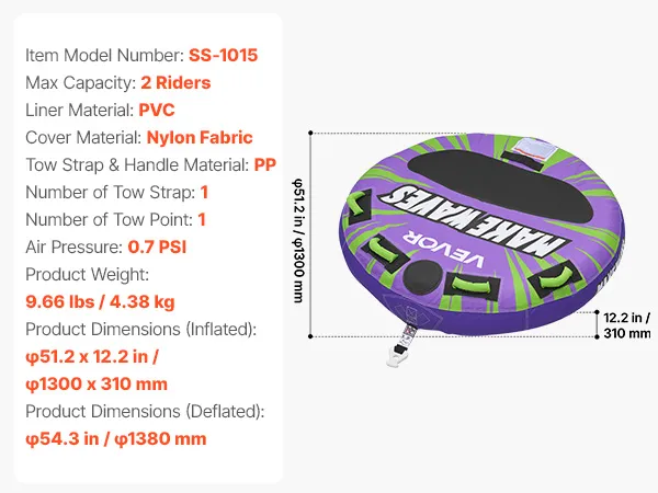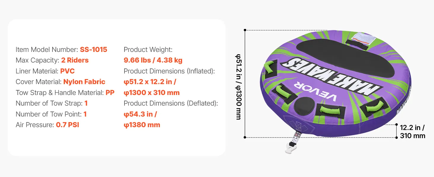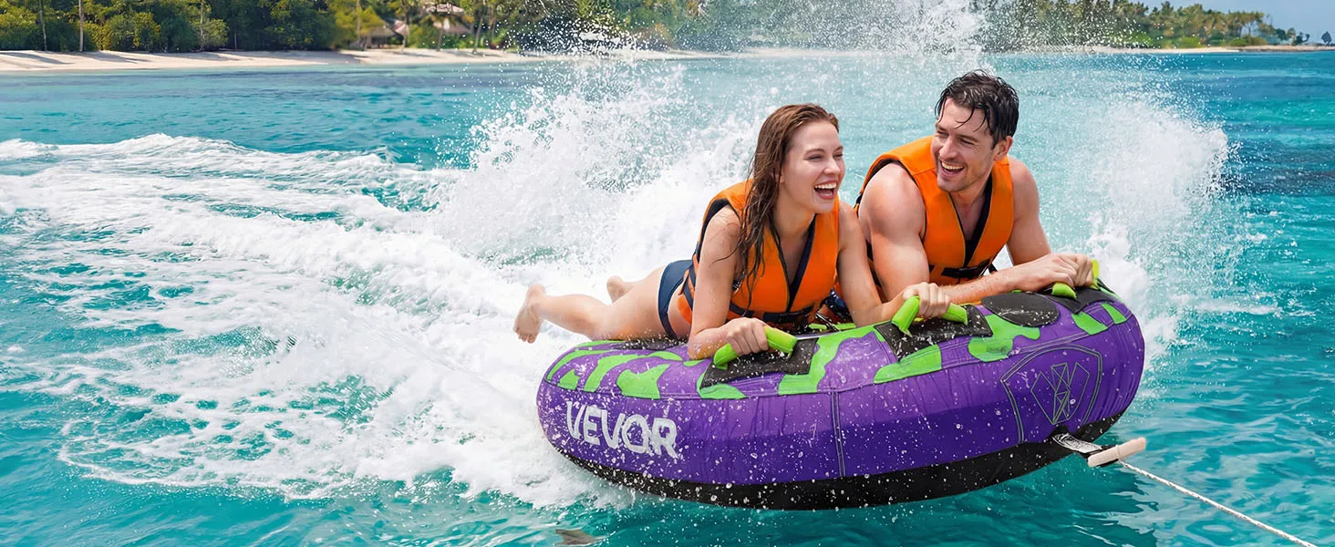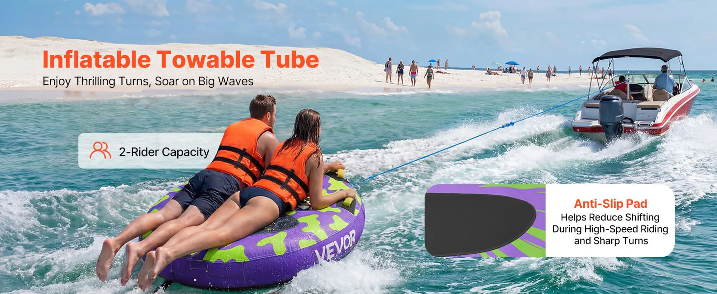 VEVOR Sleepband voor boten, watersport sleepband voor 2 personen, tot 154 kg draagvermogen, met antislipkussens, nylon hoes, gewatteerde handgrepen en veiligheidsventiel, voor meren en rivieren, paars