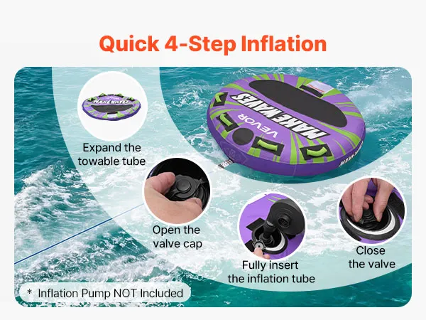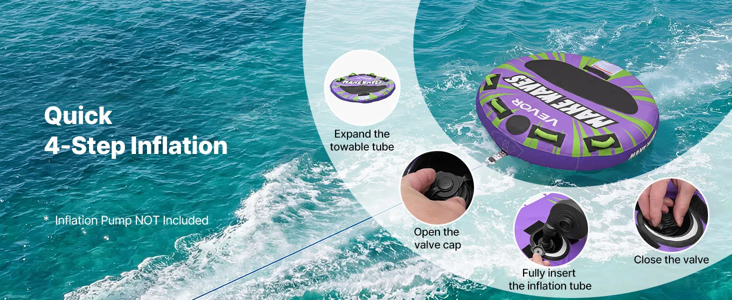 Snel opblazen en leeglaten: Dankzij een veilig ventiel met een luchtdichte afsluiting en lekbescherming is de sleepband gemakkelijk op te blazen en leeg te laten lopen. Wanneer hij niet in gebruik is, kan hij compact worden opgeborgen en gemakkelijk worden vervoerd. (Luchtpomp niet inbegrepen)