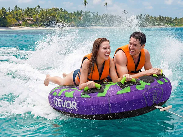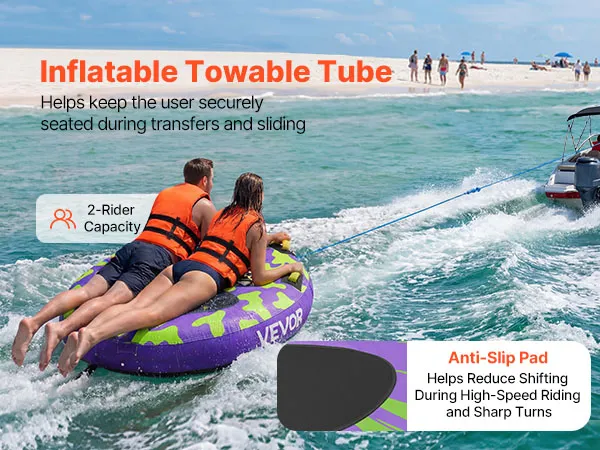 Spannend waterplezier: De sleepband is voorzien van een antislipmat die uitglijden bij hoge snelheden en scherpe bochten voorkomt. Er kunnen comfortabel tot twee personen op zitten en de band heeft een maximaal draagvermogen van 154 kg (340 lbs).