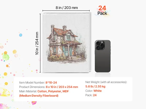 Value Pack: The 24-pack 8 x 10 inch painting canvas set caters to various your needs. Whether you're an individual artist working on multiple pieces or a group involved in collaborative art activities, this set is ideal for you.