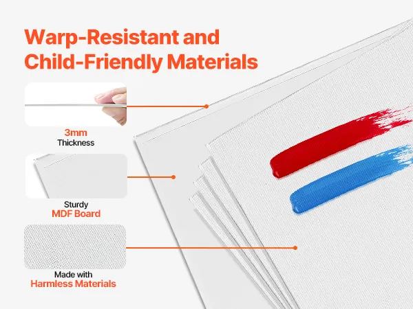 High-Quality MDF Board: Our canvas boards for painting are made with premium cotton canvas, featuring a tightly woven texture and 3mm thickness. They are durable and won't bend or warp, providing superior color absorption and a smooth feel. This ensures your artwork remains vibrant and the colors stay rich for a long time.
