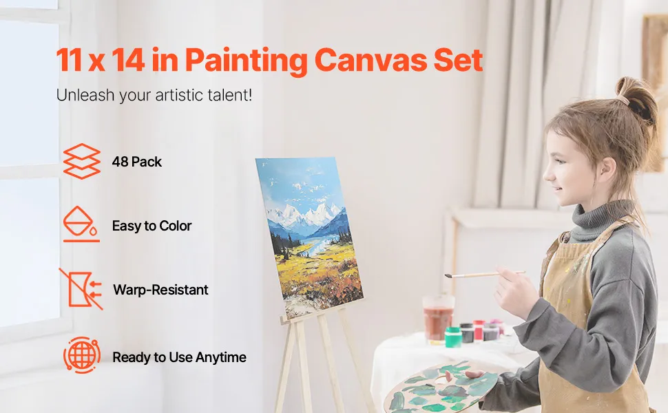 Waardepakket: set van 48 canvasdoeken van 280 x 335 mm (11" x 14") voor uiteenlopende behoeften. Of u nu alleen aan meerdere kunstwerken werkt of als groep aan gezamenlijke kunstactiviteiten deelneemt, deze set is ideaal voor u.
