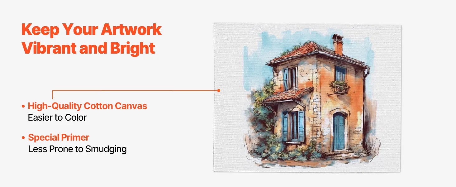 Our canvas for painting features a tightly woven texture, offering superior color absorption and an excellent tactile experience. It is ideal for creating vivid and detailed artwork. With a special primed surface, it's suitable for both oil and watercolor paintings, eliminating bleeding.