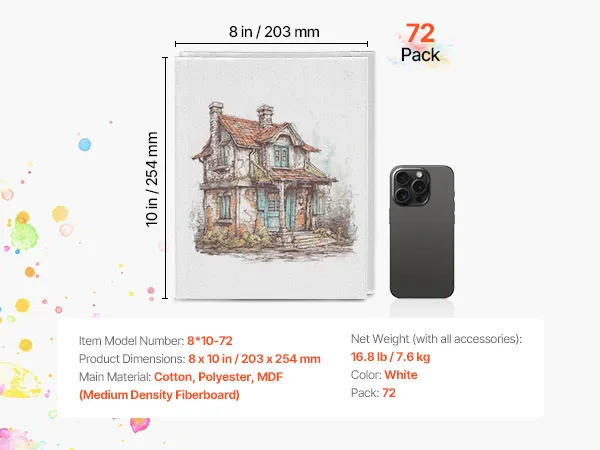 Value Pack: The 72-pack 8 x 10 inch painting canvas set caters to various your needs. Whether you're an individual artist working on multiple pieces or a group involved in collaborative art activities, this set is ideal for you.