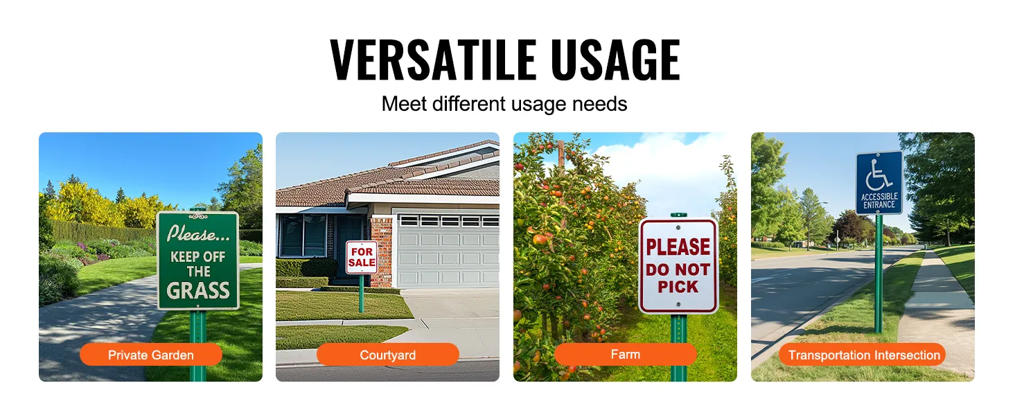 Ze zijn perfect voor veel omgevingen. Gebruik ze in tuinen, op boerderijen of bij kruispunten. Ze kunnen voetgangers en voertuigen begeleiden, paden markeren en waarschuwingen geven. Ze zijn ook geweldig voor het weergeven van borden of banners voor informatie- of reclamedoeleinden. Hun formaat en sterkte maken ze geschikt voor verschillende doeleinden. U kunt erop vertrouwen dat ze in verschillende omgevingen werken.