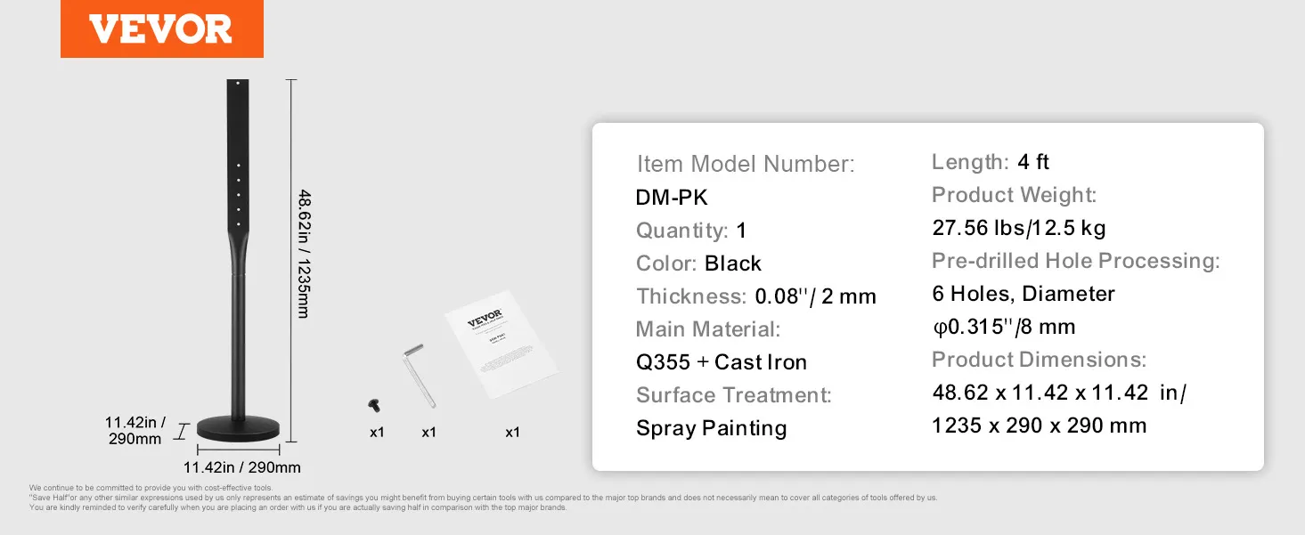 Pre-drilled Holes: The stand pole has pre-drilled 0.315''/8mm holes, with 6 holes pre-drilled per pole. The hole spacing and size are standardized for all pole heights, allowing for easy installation.