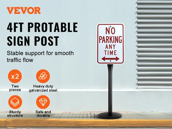 This portable sign post is made of heavy-duty galvanized steel, ensuring high strength and durability. It is rust-resistant and corrosion-resistant, making it resistant to wear even with long-term use.
