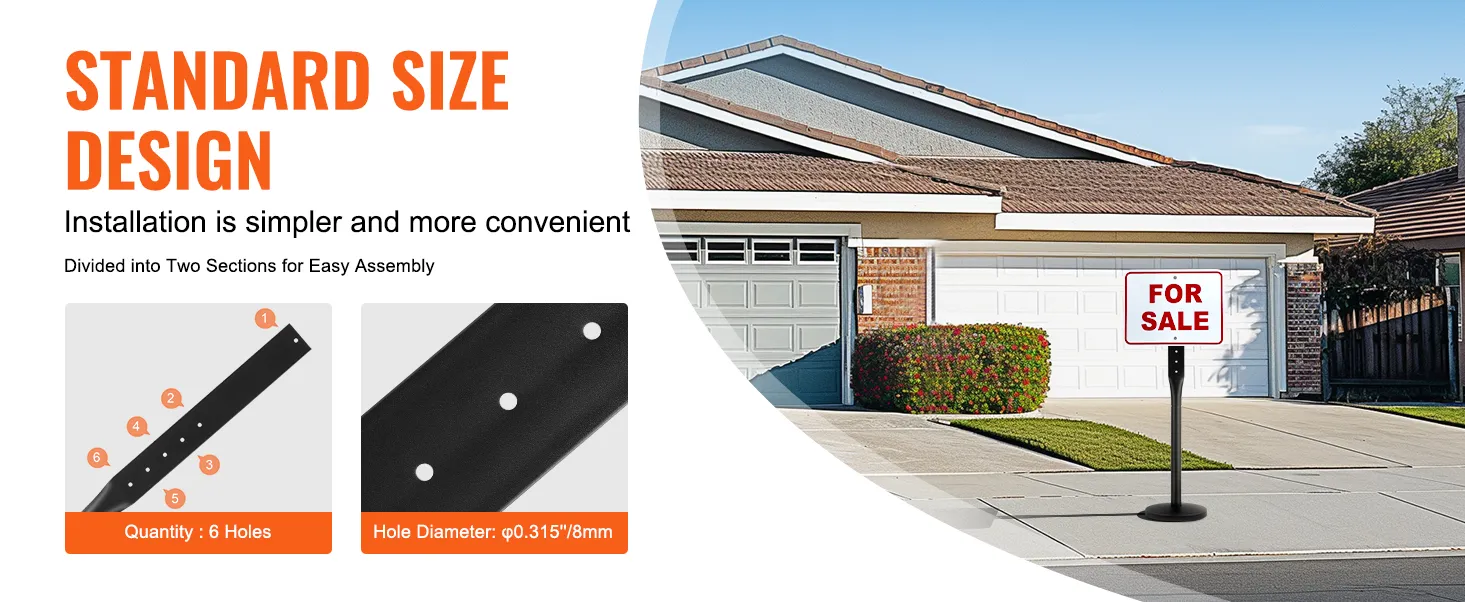 Sturdy and Durable: The sign post includes 1 pole, each made from high-quality cast iron base + steel rod, ensuring high strength and durability. They are treated with corrosion-resistant coating to prevent rusting, making them suitable for use in rainy, snowy, or hot summer conditions.