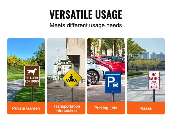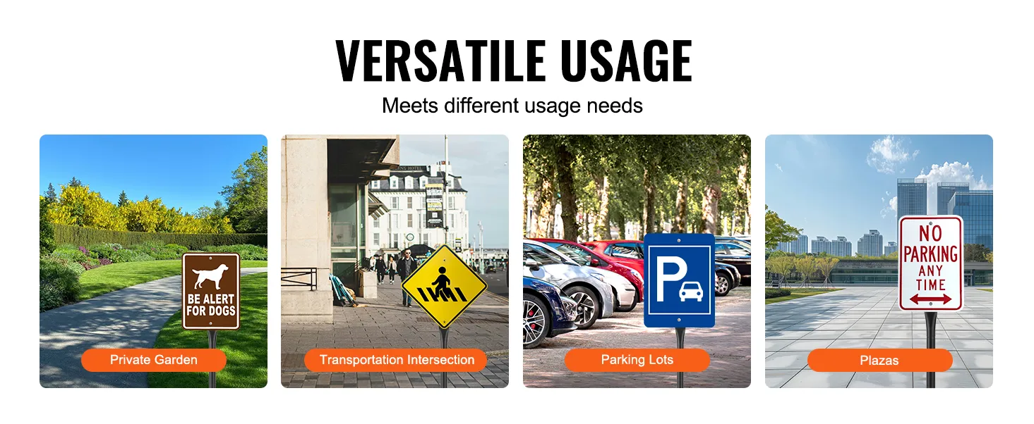 This portable steel post is versatile and suitable for various environments such as private gardens, traffic intersections, parking lots, etc., for alerting pedestrians and vehicles, guiding routes, providing warnings, or serving informational and promotional purposes.