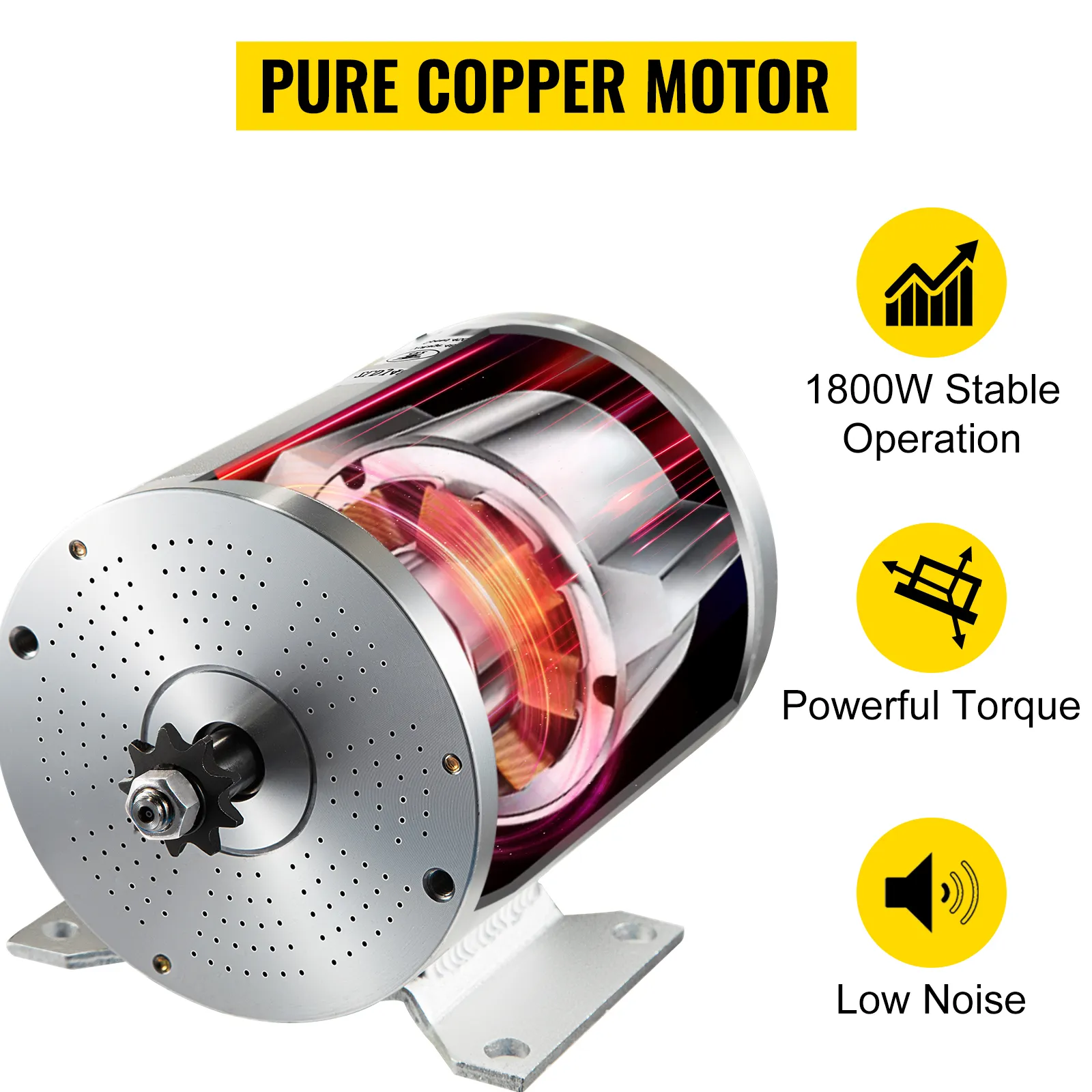 The electric brushless dc motor features a 100% pure copper core for high conductivity, high-temperature resistance, low noise, and saves energy during extended use.