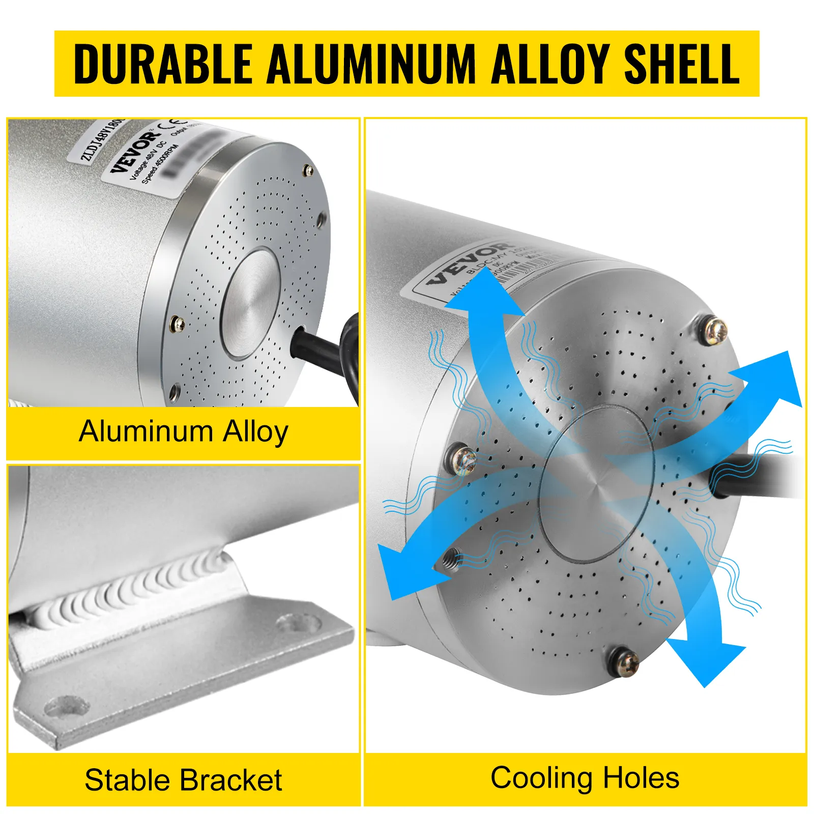 The electric go kart motor is constructed from aluminum alloy material, which can resist oxidation, compression, and deformation. Besides, it is lightweight enough to carry and process with ease.