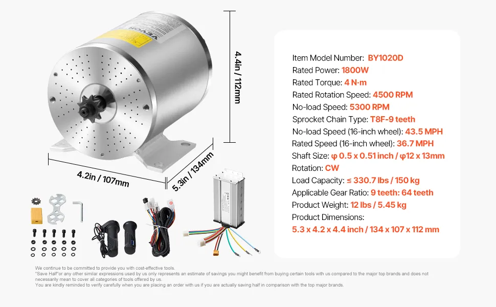 Eenvoudige doe-het-zelf-installatie: het pakket bevat: 1 x 48V 1800W borstelloze motor, 1 x motorcontroller, 1 x gashendel en 1 x montageaccessoireset. Deze motorkit bevat gedetailleerde bedradingsschema-instructies en is ideaal voor doe-het-zelvers en hobbyisten die hun eigen elektrische voertuigen willen upgraden of bouwen.