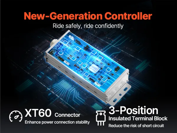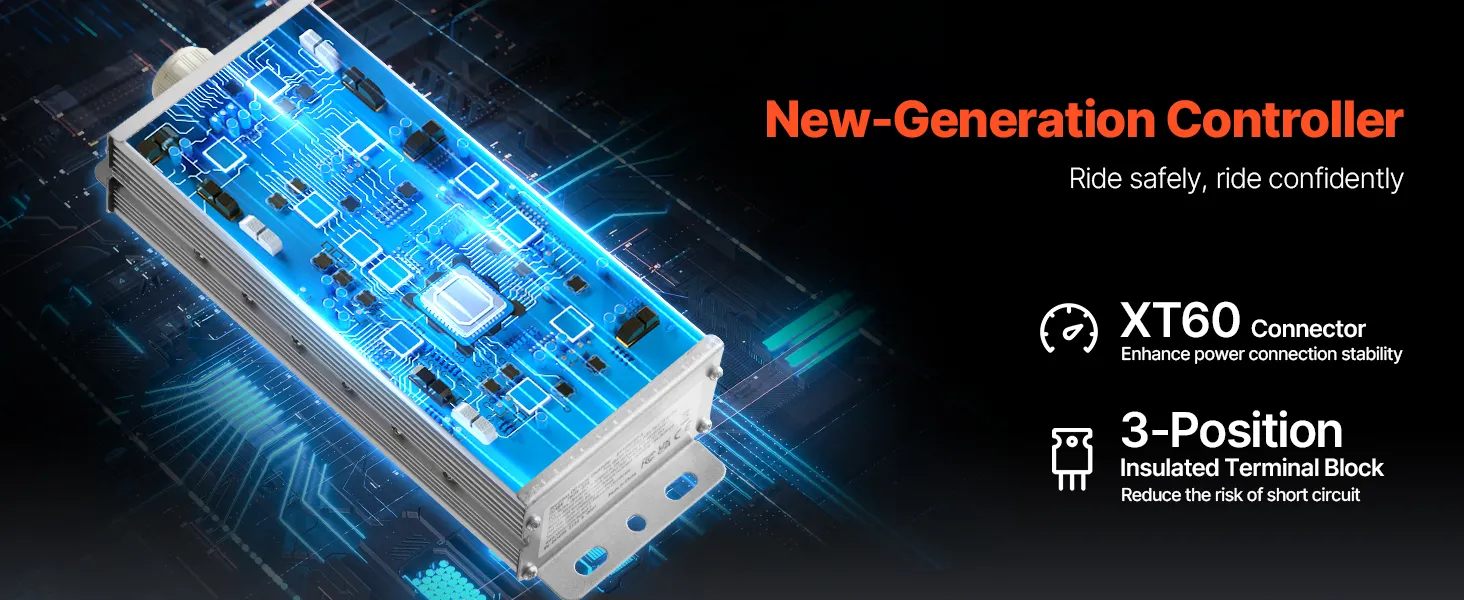 Upgrade to our new-generation controller and ride safely. Featuring an XT60 connector, it enhances power connection stability for reliable performance. The 3-position insulated terminal block reduces the risk of short circuits, adding an extra layer of safety to your journey.