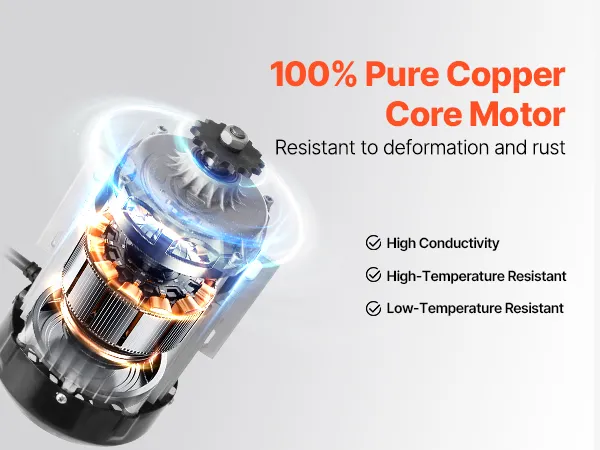 Quiet, Reliable, and Versatile Operation: 100% Copper Core Motor for excellent heat and cold resistance, ensuring stable performance in extreme weather conditions. With a low noise level of 70 dB, this motor offers quiet operation. It also features CW & CCW dual-direction control, enabling easy switching between forward and reverse for added versatility in tight spaces.