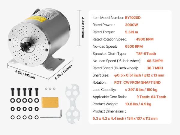 Easy DIY Installation: Package includes: 1 x 72V 3000W Brushless Motor, 1 x Junction Box, 2 x Wrenches, 1 x Set of Assembly Hardware, and 1 x User Manual. This motor kit comes with detailed wiring diagram instruction, ideal for DIY enthusiasts and hobbyists looking to upgrade or build custom electric vehicles.