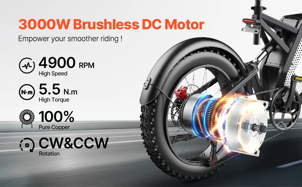 Upgrade uw fiets met vertrouwen en ervaar meer vermogen, betrouwbaarheid en rijplezier met de 3000W 72V borstelloze DC-motorkit, verbeterde controller, nominaal koppel van 5,5 Nm en bidirectionele bediening met de klok mee en tegen de klok in.