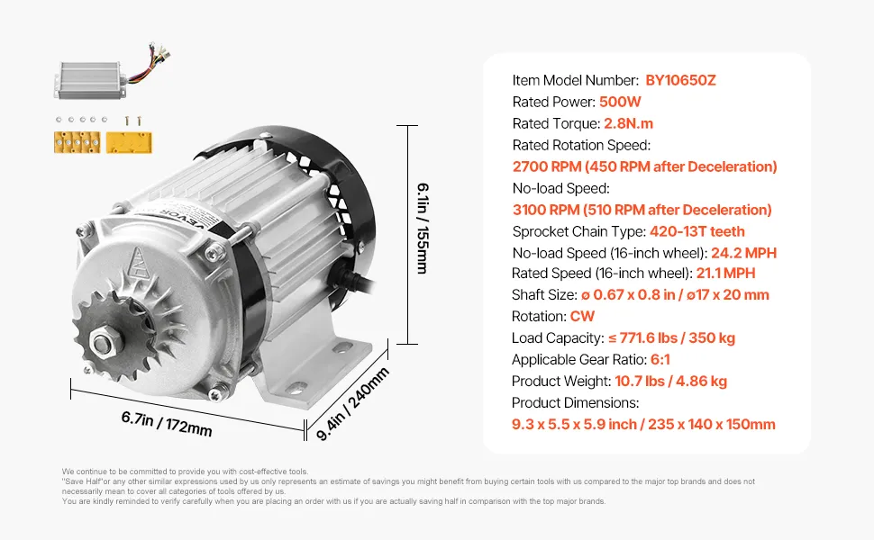 Upgrade uw fiets met vertrouwen en ervaar meer vermogen, betrouwbaarheid en rijplezier met de 500W 48V borstelloze DC-motor, verbeterde controller, 2,8 Nm nominaal koppel en CW-richtingscontrole.