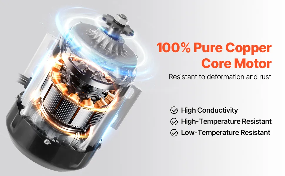 De kern van de motor is gemaakt van 100% zuiver koper en is uitzonderlijk goed bestand tegen vervorming en roest. Bovendien zorgt de hoge geleidbaarheid voor een optimaal rendement. Het is ontworpen voor extreme weersomstandigheden en zorgt voor een soepele en veilige rit.