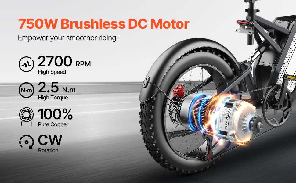 Upgrade uw fiets met vertrouwen en ervaar meer vermogen, betrouwbaarheid en rijplezier met de 750W 48V borstelloze DC-motor, verbeterde controller, 2,5 Nm koppel en CW-richtingscontrole.