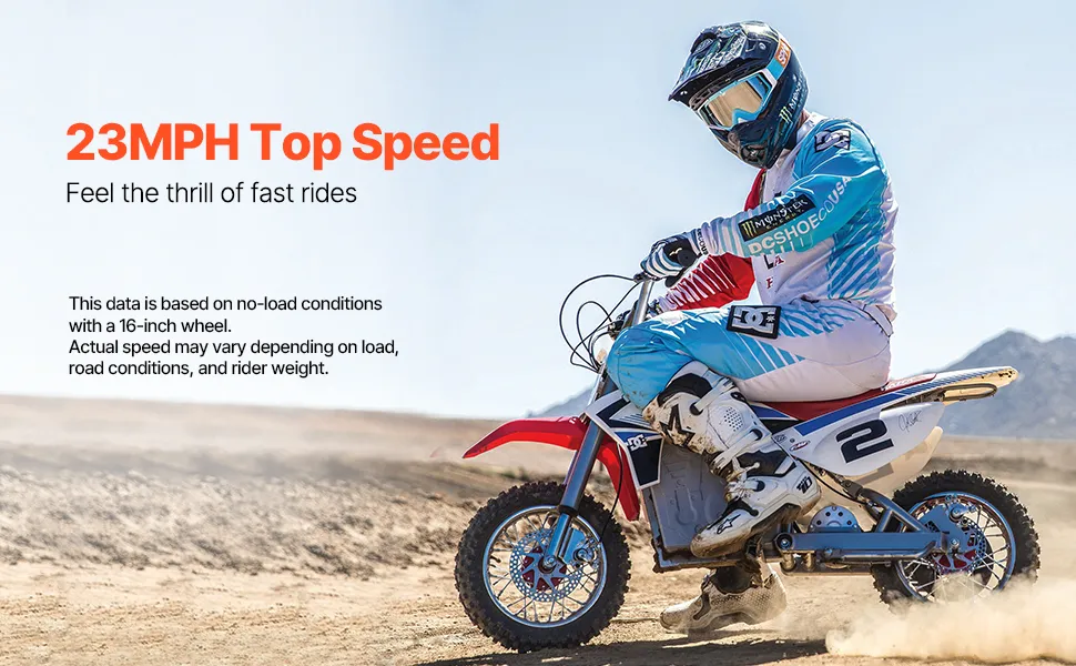 Ervaar de ultieme sensatie met een stationair toerental van 37 km/u! (Deze topsnelheid is gebaseerd op stationair draaiende omstandigheden met een 16-inch wiel – de werkelijke snelheid kan variëren afhankelijk van de belasting, de wegomstandigheden en het gewicht van de berijder)