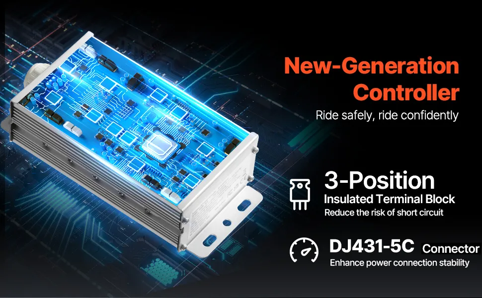 Geavanceerde veiligheids- en besturingsfuncties: De verbeterde controller integreert meerdere veiligheidsfuncties, waaronder overbelasting, onderspanning en kortsluiting. Het biedt ook belangrijke gebruikersfuncties zoals snelheidsregeling en remmen voor soepele en betrouwbare prestaties. De controller zorgt voor optimale prestaties en behoudt tegelijkertijd de veiligheid en flexibiliteit onder verschillende omstandigheden.