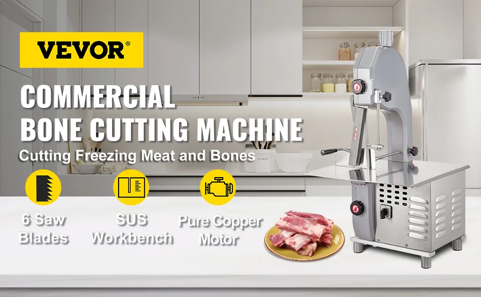 Onze elektrische werkbank-vleeszaag is gemaakt van roestvrij staal en voldoet aan de nationale normen voor voedselhygiëne. Een krachtige motor van 1500 W zorgt voor uitstekende prestaties. De vleesbottensnijder is geschikt voor het snijden van dik vlees en botten in de slagerij. Het zorgt ervoor dat botten, bevroren vlees en vis gemakkelijk en moeiteloos worden gesneden. Snijd door alles alsof het een dun stuk papier is met onze bottensnijmachine.