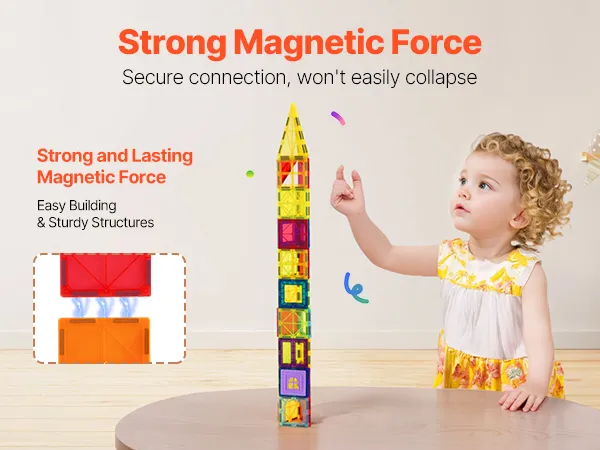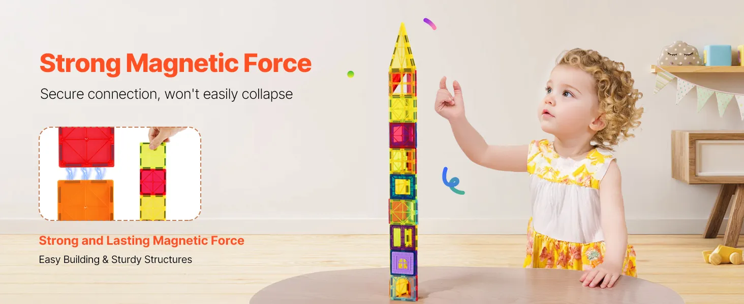 Onze magnetische bouwstenen zijn ontworpen voor urenlang ongestoord speelplezier. Of ze nu hoge torens of complexe constructies bouwen, kinderen kunnen met vertrouwen spelen in de wetenschap dat hun creaties stabiel zullen blijven.
