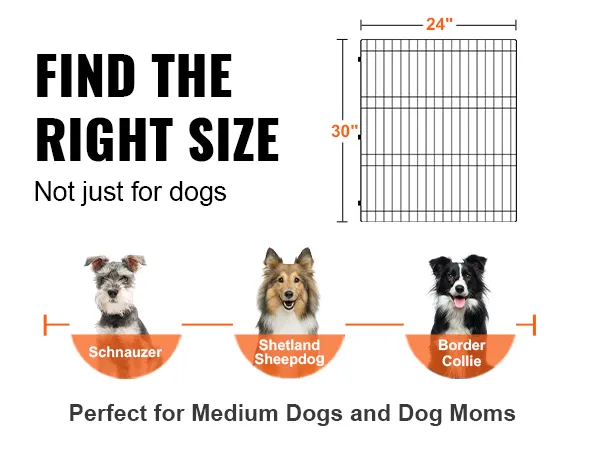 Ideal for Various Pets: The 30" high dog pen is perfect for accompanying medium-sized dogs from puppy to adulthood. It is suitable for breeds such as Border Collies, Schnauzers, Shelties, as well as cats, rabbits, ducks, and guinea pigs.
