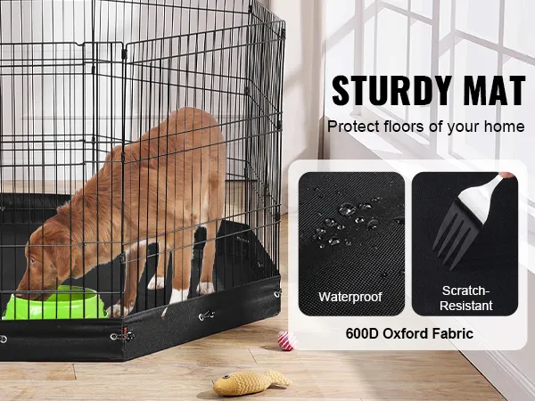 Waterproof and Durable Ground Mat: Made of 600D heavy-duty Oxford fabric, the ground mat of our exercise pen is easy to clean, scratch-resistant, and chew-resistant, protecting your floors from damage.