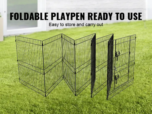 Versatile Use: This dog playpen is composed of 8 panels that can be arranged into a 24" side-length octagon, providing a spacious area for pets. The door opens all the way to the top, allowing easy access for the owner.