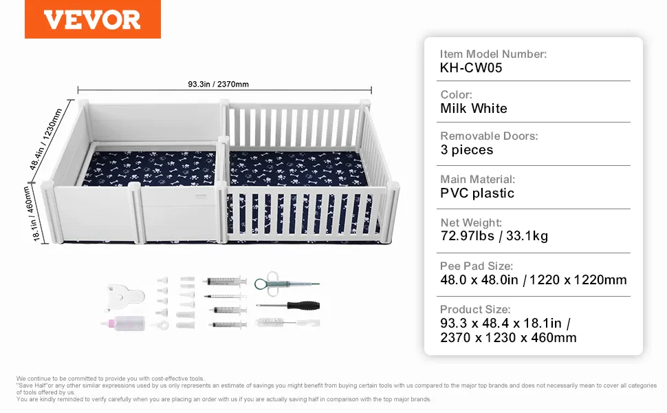 Werpkist met twee kamers: deze 2370 x 1230 x 460 mm grote werpkist met twee zones biedt een gezellig slaapgedeelte en een speelruimte voor moederhonden en puppy's. Het is gemaakt van duurzaam, braamvrij PVC en is bestand tegen vervorming voor een lange levensduur. Het biedt uw huisdieren een droomhuis en u gemoedsrust. Let op: Controleer de afmetingen om er zeker van te zijn dat ze perfect bij uw ras passen.)