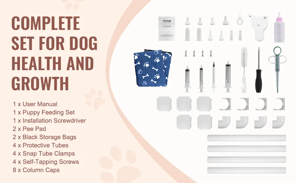 Complete verzorgings- en voedingsset: naast de wasbare plaspads bevat de werpkist voor honden en puppy's een opbergtas om de onderdelen na demontage georganiseerd te houden en ervoor te zorgen dat er geen onderdelen verloren gaan. De meegeleverde verzorgings- en voedingsset (meetlint x 1, voedingsset: spuit x 4, connector x 4, petfles x 1, flesdop x 2, reinigingsborstel x 1, naaldvijl x 1, feeder x 1, deksel x 2 ) biedt alles wat u nodig heeft Puppyverzorging is nodig tijdens de groeifase.