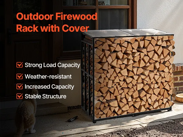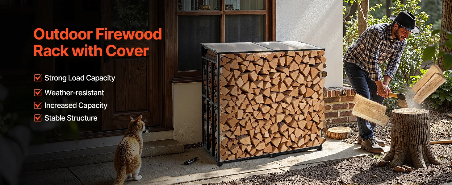 Galvanized Steel & Aluminum Alloy Frame: Constructed with high-strength galvanized steel and aluminum alloy, the firewood holder frame is finished with a durable powder coating for excellent rust resistance. Engineered for long-term outdoor use, it won't easily warp or deteriorate over time.