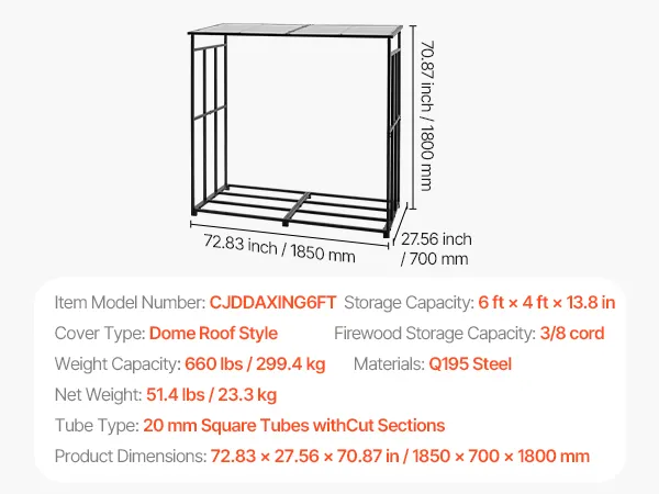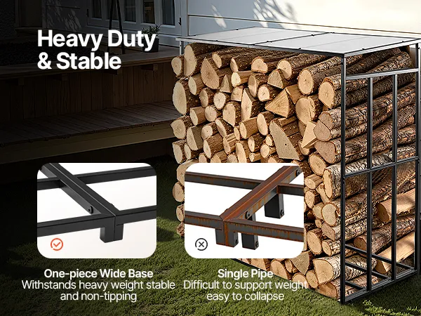 Frame van gegalvaniseerd staal en aluminiumlegering: Het frame van het brandhoutrek is gemaakt van hoogwaardig gegalvaniseerd staal en aluminiumlegering en heeft een duurzame poedercoating voor uitstekende roestbestendigheid. Het is ontworpen voor langdurig buitengebruik en zal niet snel kromtrekken of slijten na verloop van tijd.