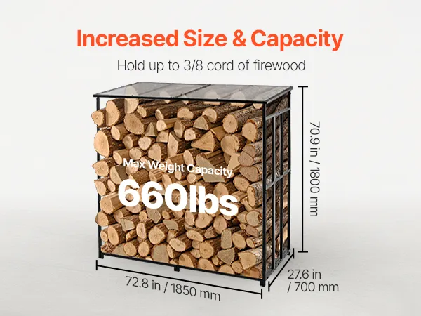 Ruime opbergruimte: Dit brandhoutrek biedt voldoende ruimte voor thuisverwarming, vuurkorven in de tuin of kampeerspullen. Het is ontworpen voor gebruiksgemak en houdt houtblokken netjes geordend en gemakkelijk toegankelijk.