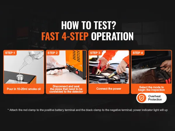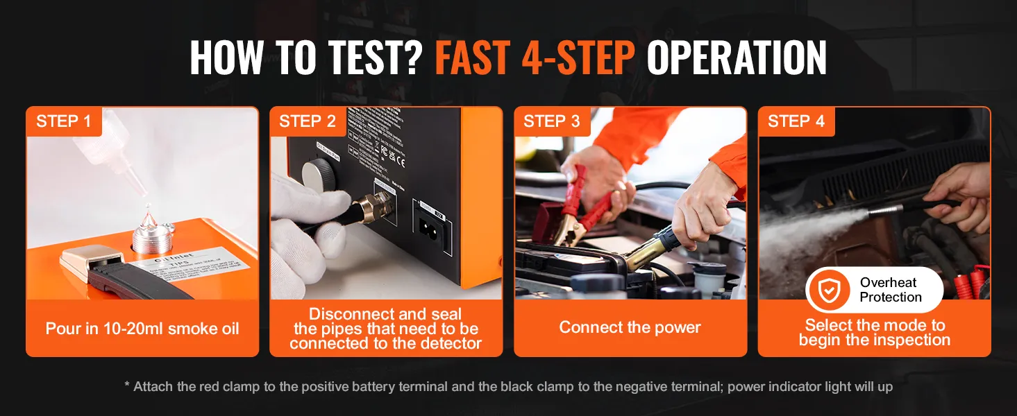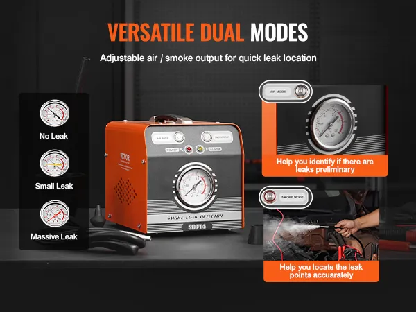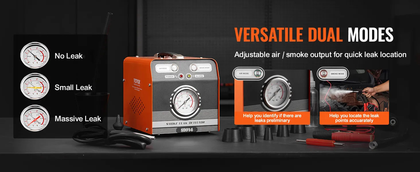 Veelzijdige detectie met 2 modi - Onze EVAP-brandstoflektester biedt twee handige modi. De luchtmodus is ideaal om te bepalen of er een lek is, terwijl de rookmodus u helpt het lek op te sporen.