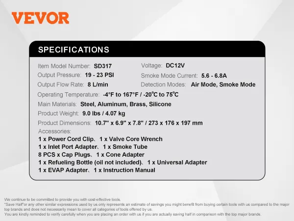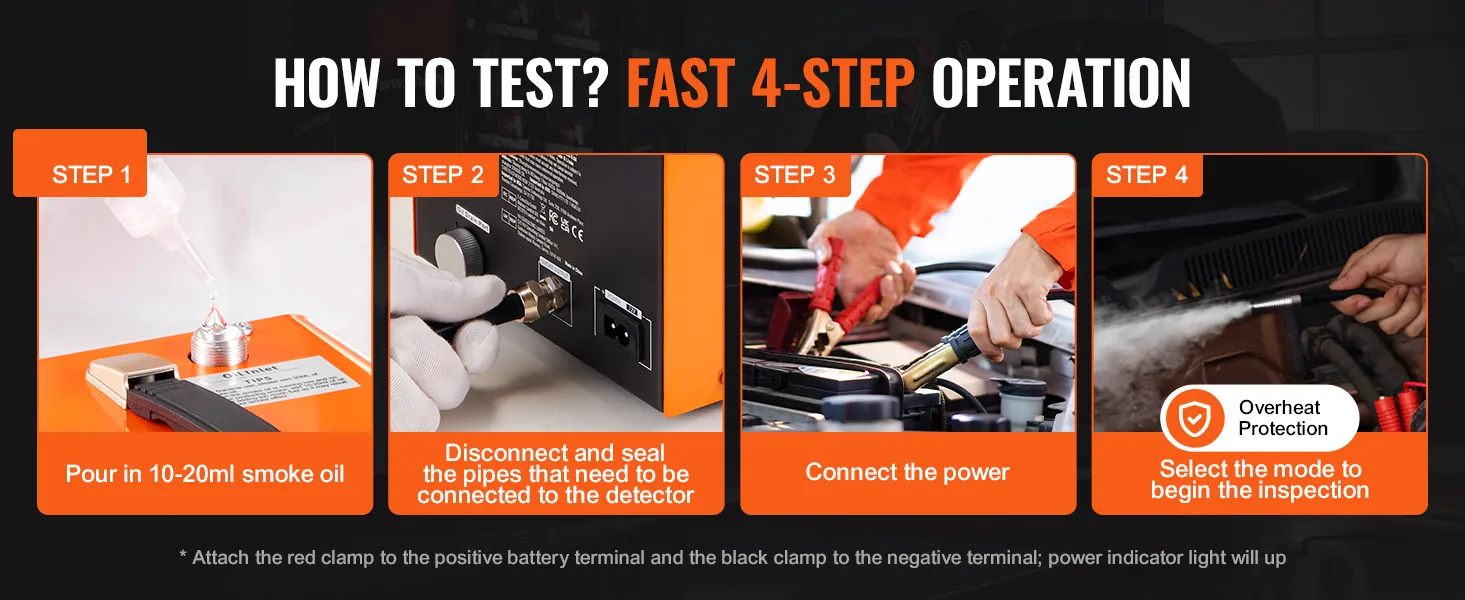 Versatile Testing Application: VEVOR automotive smoke machine is your ultimate testing tool — whether you're dealing with EVAP systems, fuel tanks, exhaust systems, intake systems, car seals, or various pipe fittings, this leak detector has you covered. Suitable for cars, motorcycles, ATVs, light trucks, it offers a comprehensive solution for thorough vehicle leak diagnostics.