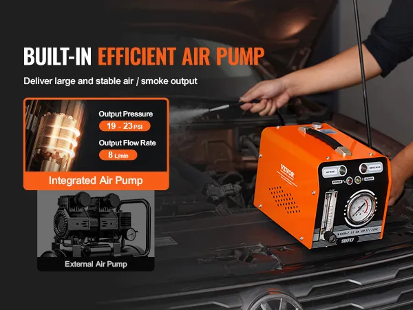 Our smoke machine leak tester comes with a built-in air pump that ensures efficient and hassle-free operation. This built-in pump streamlines your diagnostic process, allowing you to move and use the smoke tester anywhere, no need to purchase additional air pump.