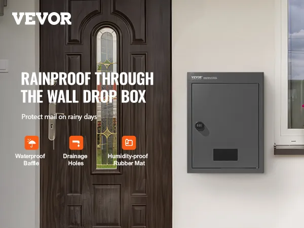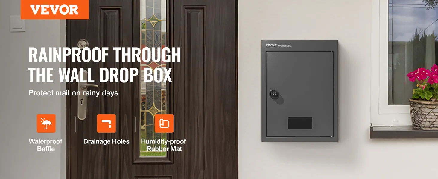 Rain-resistant design: Our wall-mounted code drop box features a rain-resistant design with a large shield in front of the delivery slot, keeping important mail safe even in heavy rain. The bottom of the box is designed with rubber pads and drainage holes to quickly remove accumulated water, preventing mail from getting wet.