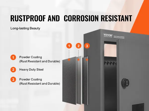 Combination lock for security: Using a combination lock is convenient as it saves the loss of keys and allows you to change the password at any time. The interior of the mailbox has metal baffles to prevent theft or capture of important mail, making it suitable for use in homes, offices, workplaces or schools.