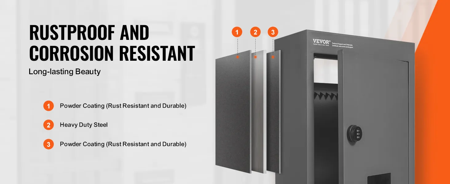 Our code box is made of sturdy steel and is powder coated for additional rust protection. It ensures longevity and corrosion resistance. The powder coating increases durability and maintains an attractive appearance over time.