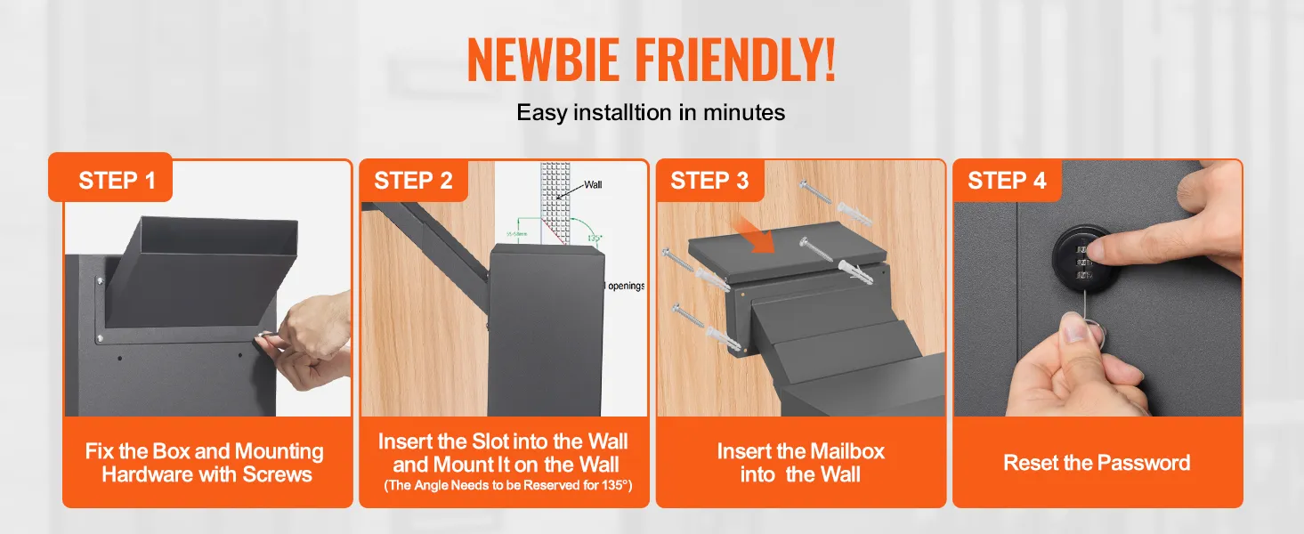Easy Installation: Our wall lock code box is equipped with adjustable sliders, suitable for walls with a thickness of 70-200mm (2.8-7.9 inches), compatible with various common wall types. The mailbox is designed for easy installation and comes with detailed installation instructions, making it easy to install even for beginners.
