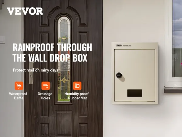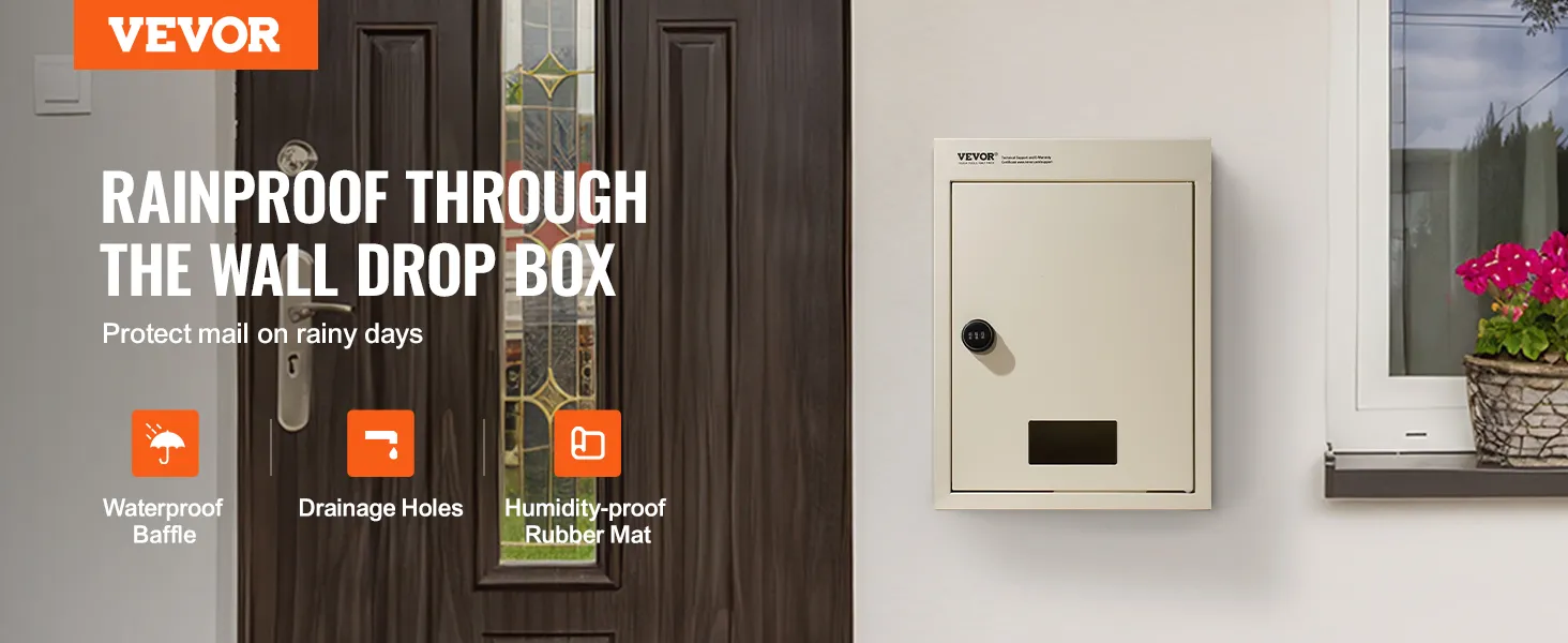 Rainproof Design: Our through the wall key drop box features a safety rainproof design with a large shield placed in front of the delivery slot, ensuring the security of important mail even during heavy rainfall. The bottom of the box is equipped with rubber pads and drainage holes to quickly remove accumulated water, preventing mail from getting wet.