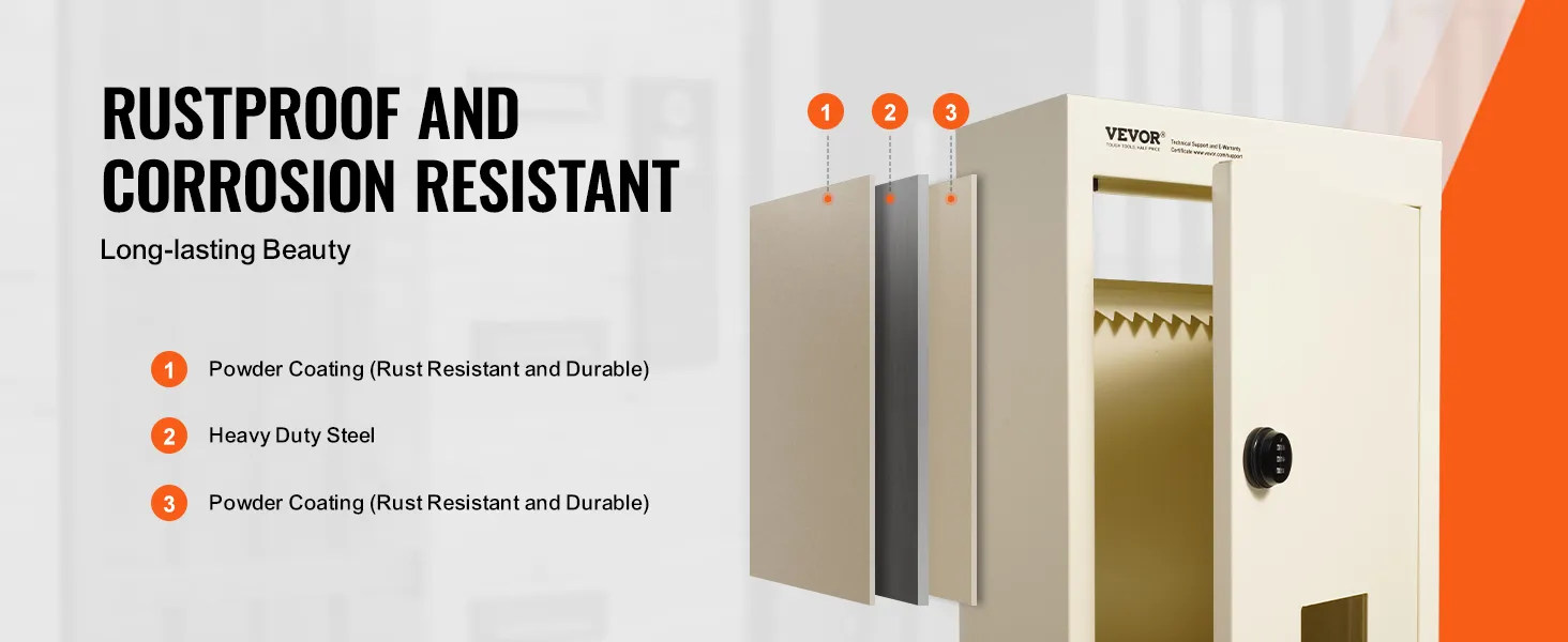 Crafted from heavy-duty steel and coated with powder for added protection against rust, our key drop box ensures long-lasting durability and resistance to corrosion. The powder-coated finish enhances its durability, maintaining an attractive appearance over time.