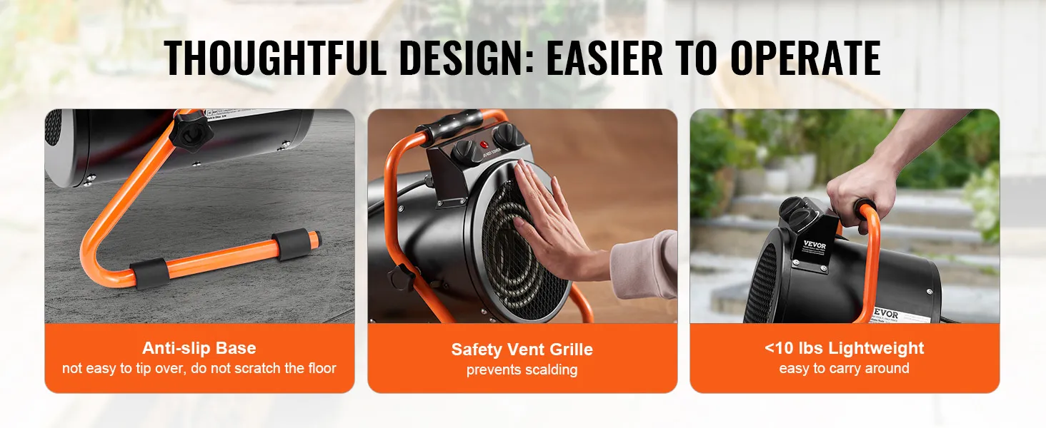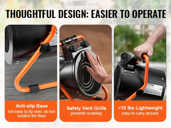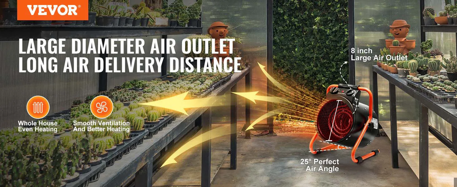 Draagbaar en lichtgewicht: onze kasverwarmer is doordacht ontworpen voor eenvoudige bediening, weegt minder dan 10 kilo en wordt geleverd met een draagbare handgreep. Hij is verstelbaar tot een hoek van 25° met een stabiele antislipbasis, zodat je hem altijd en overal mee kunt nemen en gebruiken.