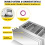 Roestvrijstalen VEVOR vetafscheider voor commercieel gebruik met afmetingen voor gebruik in de keuken.