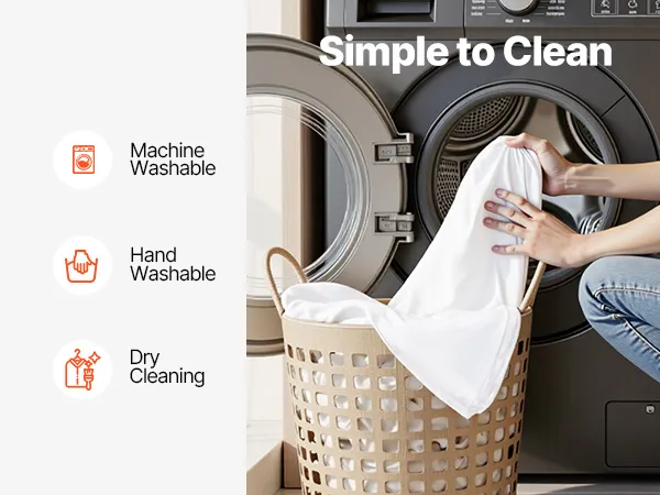 Gemakkelijk te gebruiken en te wassen: trek hem gewoon over de stoel, wat tijd en moeite bespaart. Kan met de hand gewassen worden met een mild wasmiddel, in de wasmachine of chemisch gereinigd worden.