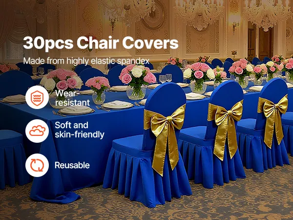 Deze elegante stoelhoezenset, gemaakt van hoogwaardige stretch spandexstof, versterkt de uniforme uitstraling van uw stoelen. Ideaal voor bruiloften, diploma-uitreikingen, verjaardagen en andere speciale gelegenheden, voegt het een vleugje elegantie en stijl toe aan elk evenement.